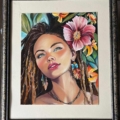 Zart, kraftvoll und voller natürlicher Anmut: Diese Darstellung einer Frau mit sonnengeküssten Wangen und einer Blüte im Haar feiert feminine Schönheit in ihrer sinnlichsten Form. Die weiche Farbgebung in Pastell unterstreicht die Leichtigkeit des Moments – fast wie ein stiller Sommertag, eingefangen auf Papier.